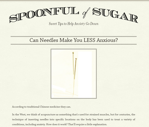 Spoonful of Sugar is my professional blog. My private practice as a naturopathic doctor focuses on anxiety and related conditions. This site represents some of the most fun I've had with responsive design.
